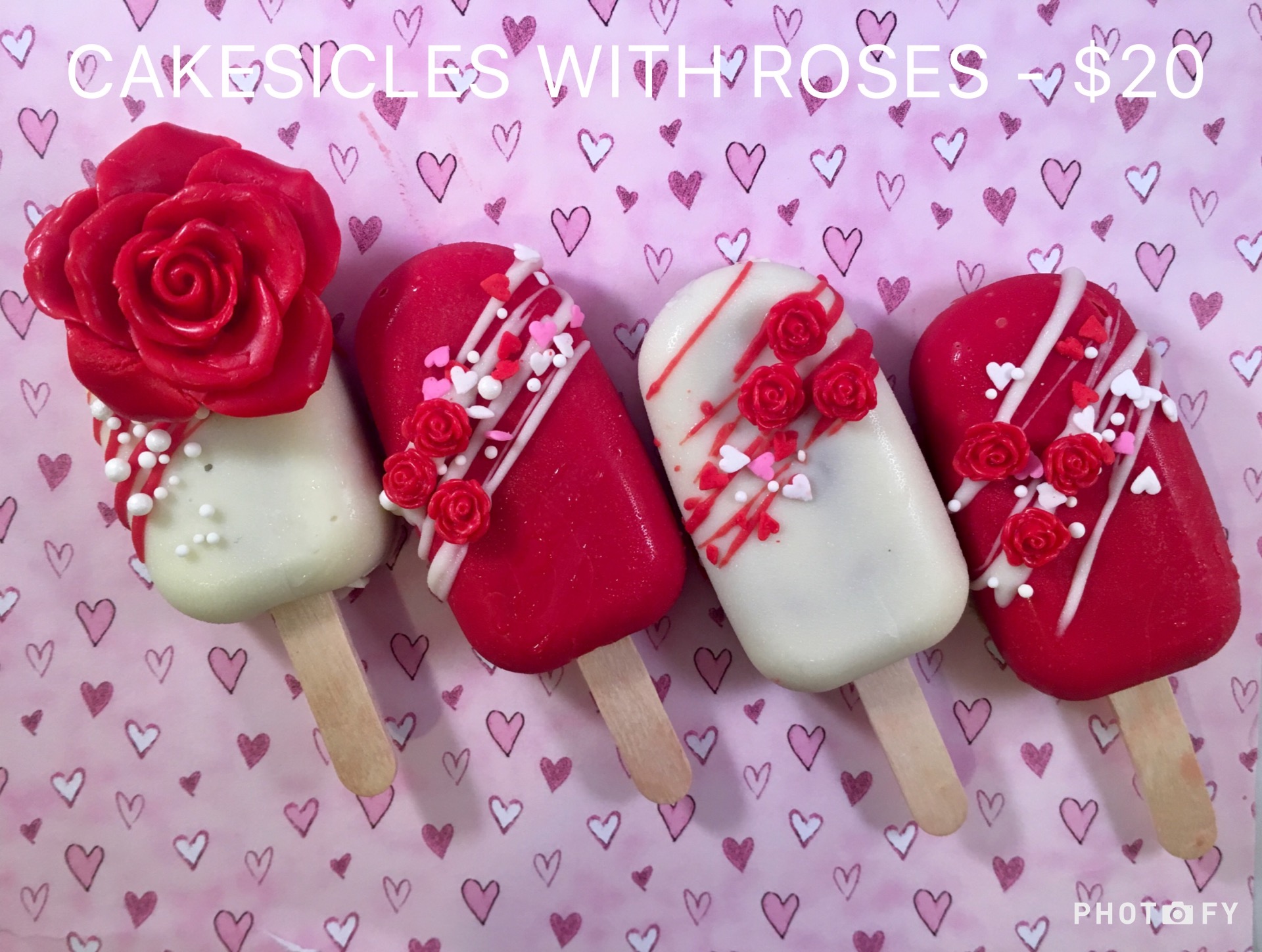 - 4 cakesicles with fondant roses